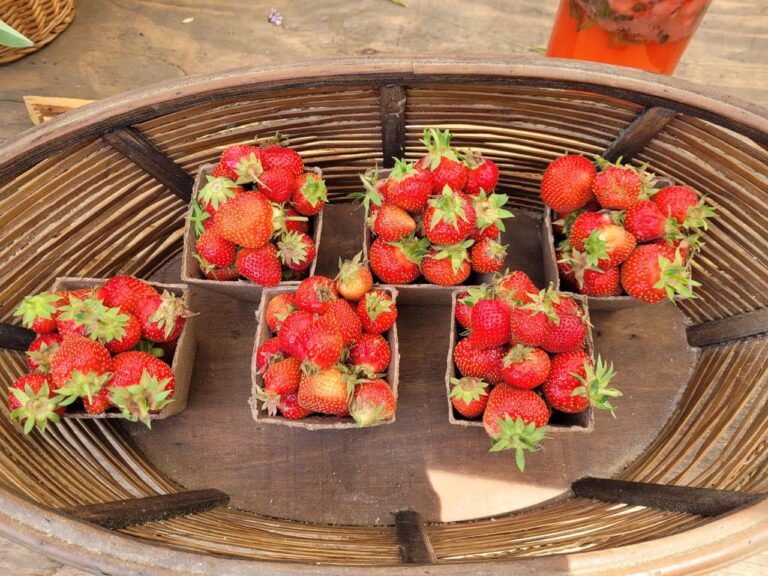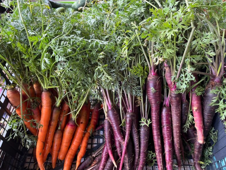 To whet your appetite, here’s some of what’s included in our farm share. In addition to fresh produce, we offer seedlings, flowers, fruits, prepared foods, and our finest pasture-raised chickens and eggs. If you sign up before the end of January, you’ll enjoy a 10% discount.