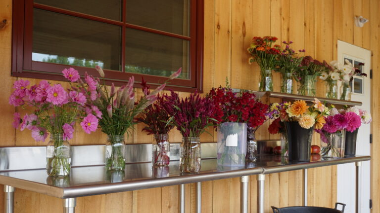 You can also visit our farm store at 180 Drinkwater Rd on Friday afternoons from 4-7 pm and Saturdays from 9-3 pm. Enjoy a discount on our full selection of produce and flowers by joining our farm share; you can pick-up at the store or at the Exeter market.