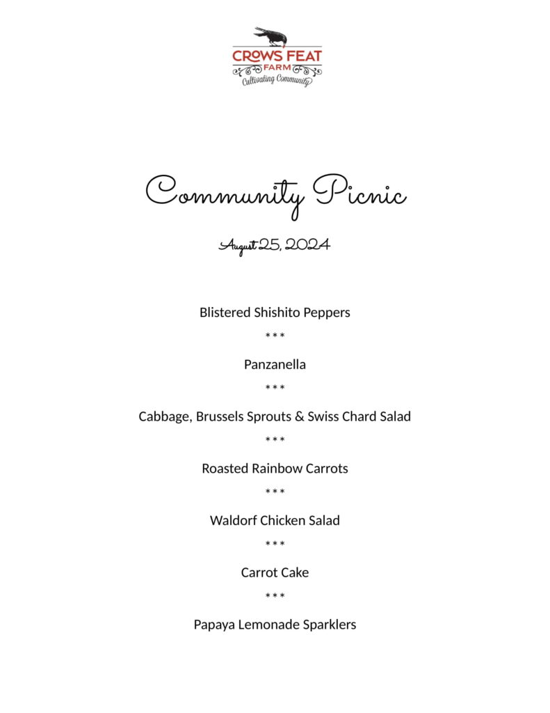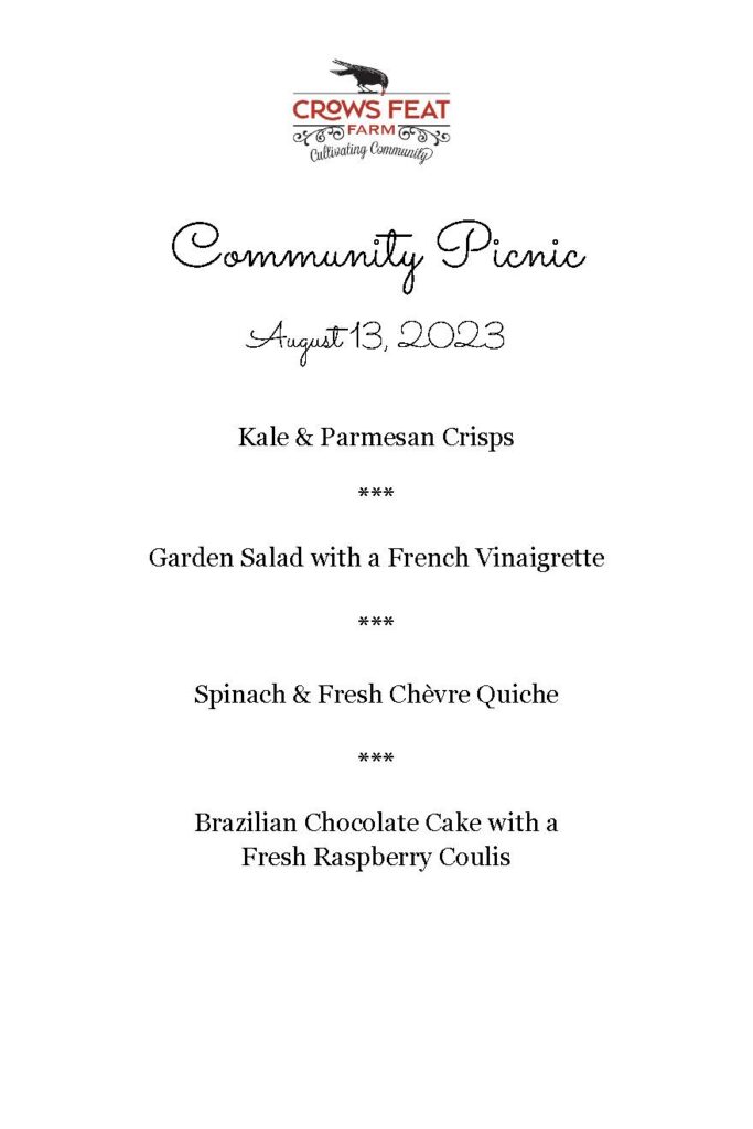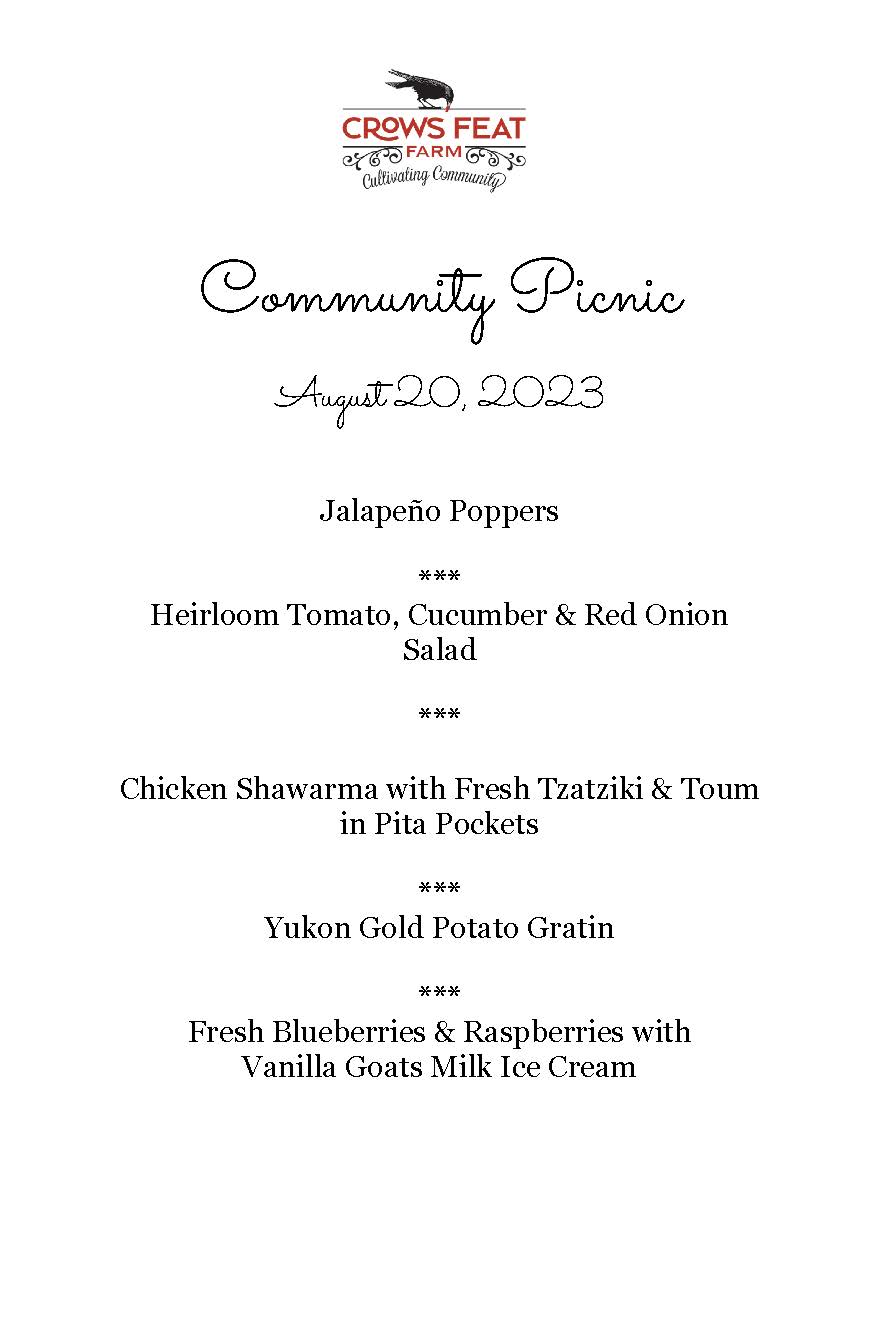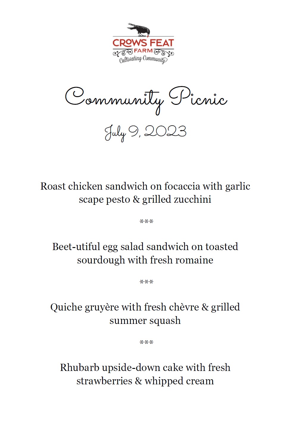 In 2025 we will again be offering Sunday Picnics ahead of our 3pm concerts. The food is grown right here on the farm, with an emphasis on the freshest produce – served buffet style in a casual, family-friendly atmosphere