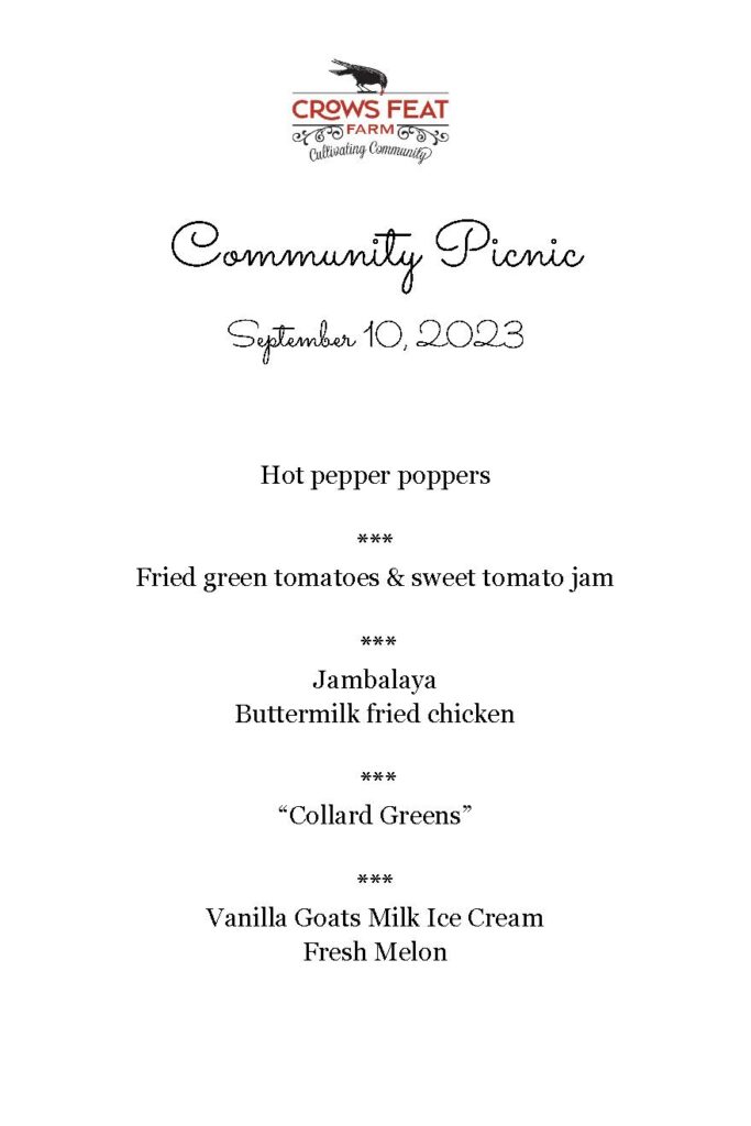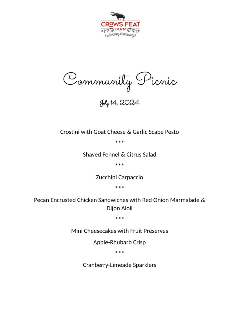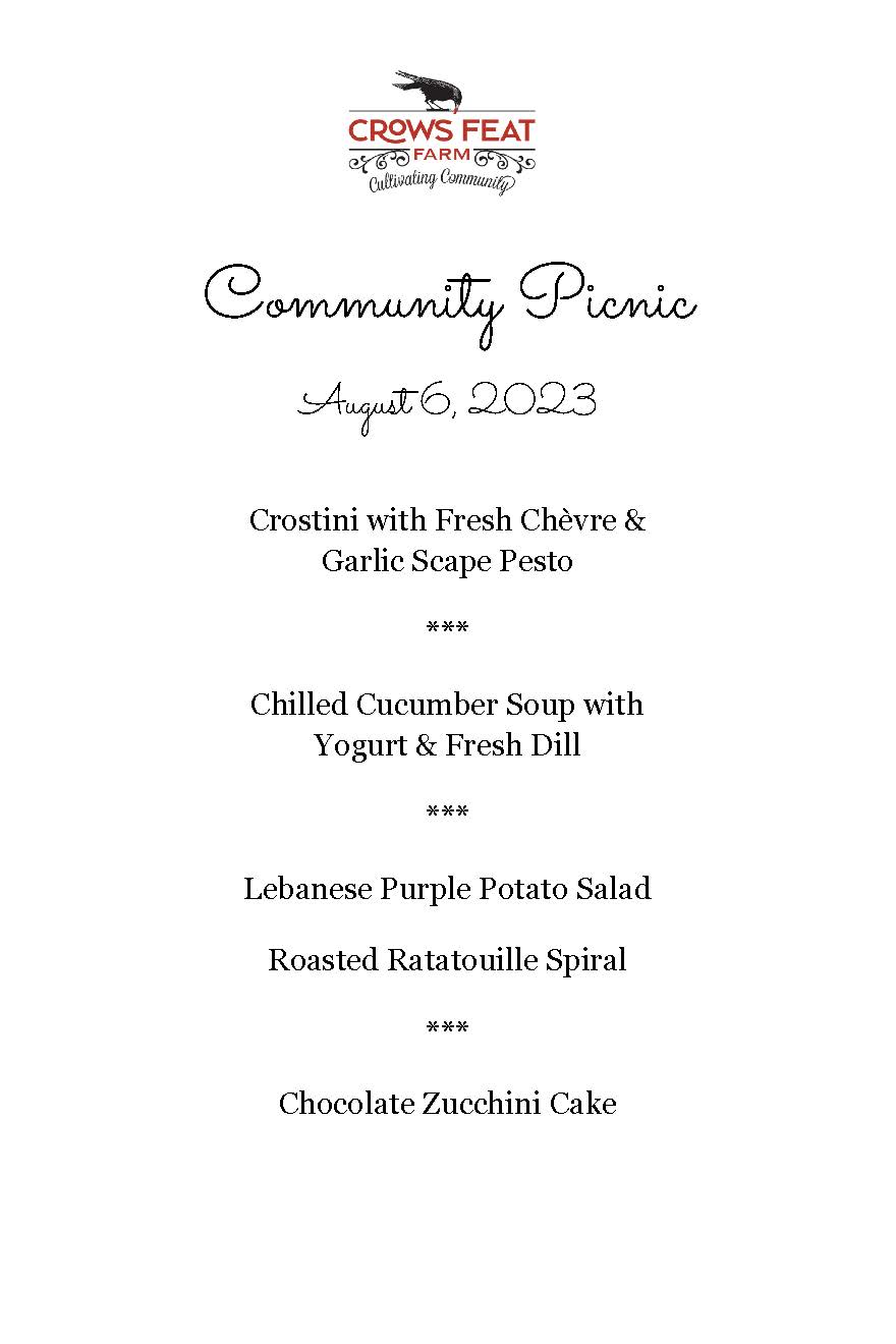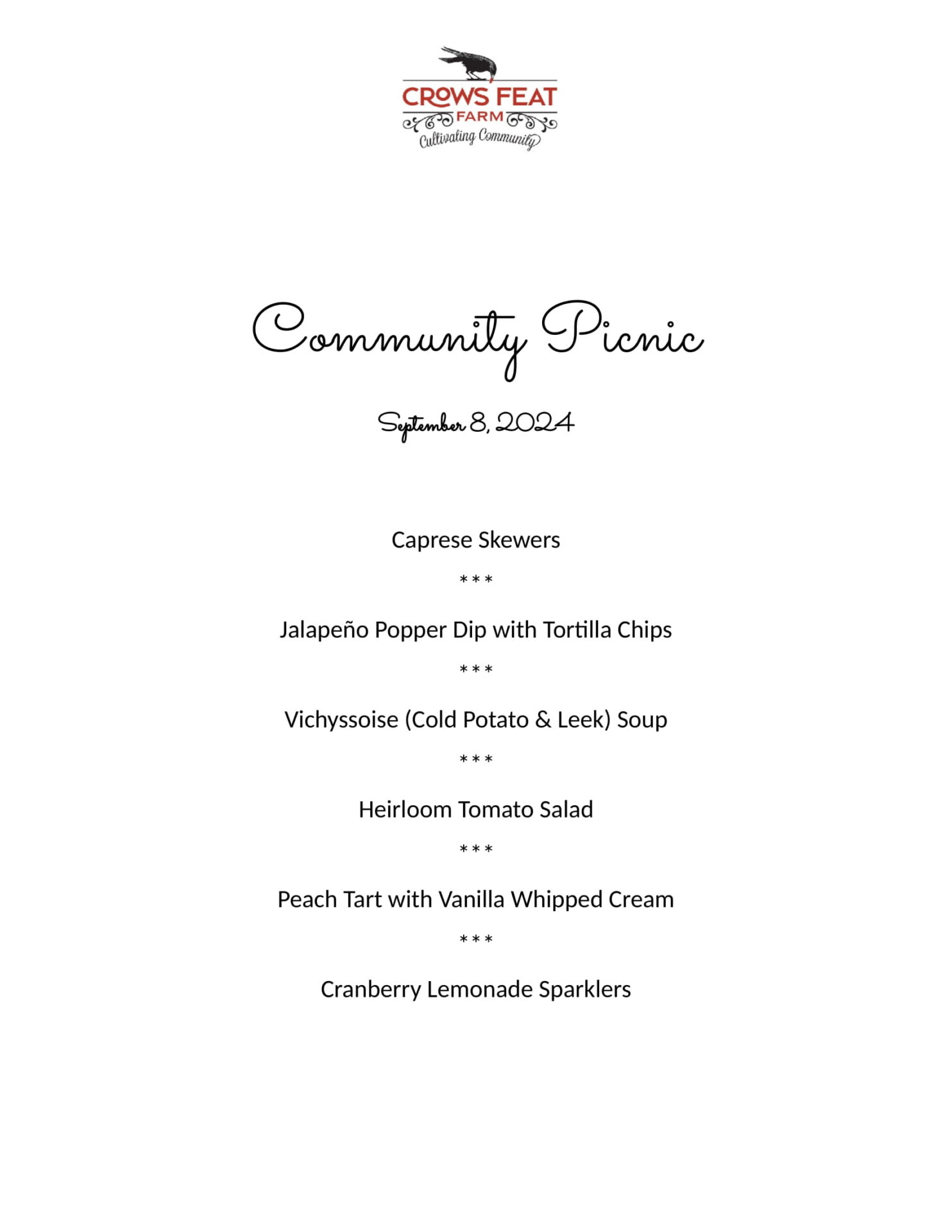 In 2025 we will again be offering Sunday Picnics ahead of our 3pm concerts. The food is grown right here on the farm, with an emphasis on the freshest produce – served buffet style in a casual, family-friendly atmosphere